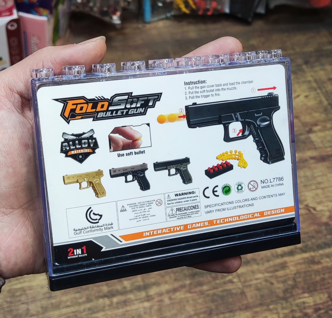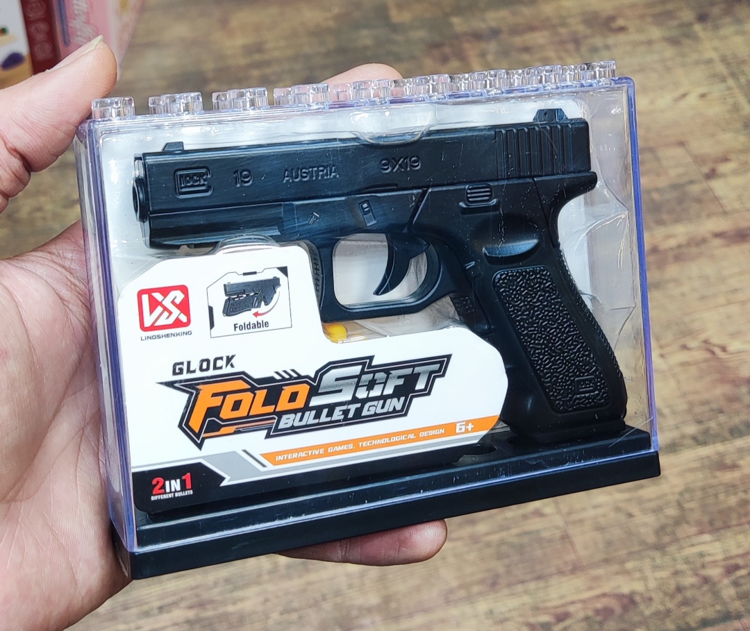 اسباب بازی کلت فلزی مدل گلاک دوکاره تاشو
